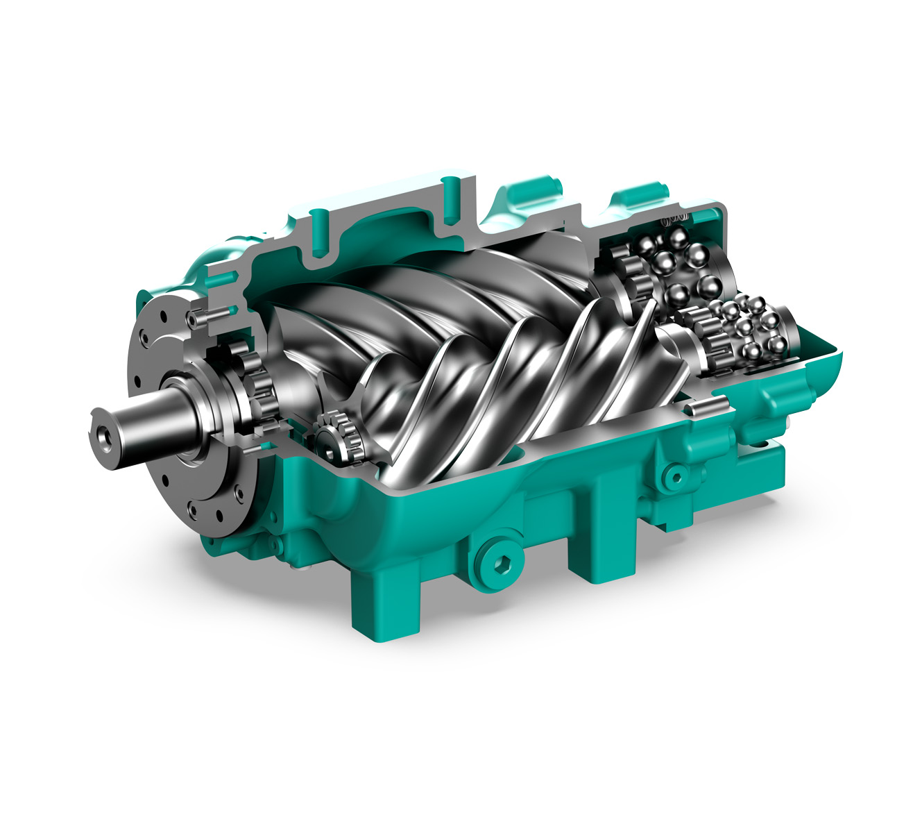 采用非對稱(chēng)齒型,主轉子五齒,副轉子六齒,齒間落差小,因此回流損失小。比傳統的四六齒型更高效率